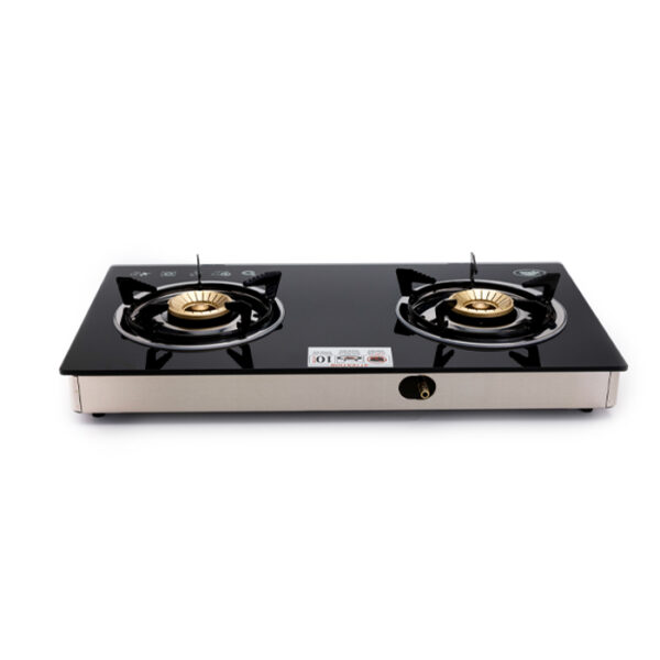 Kyowa Double Burner Glass Top Gas Stove with Cast Iron Burners (KW-3562)